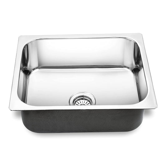 SIROTIA 18" X 16" X 8" Single Bowl Kitchen Sink With Chrome Finish. 304 Grade SS (Square Round)